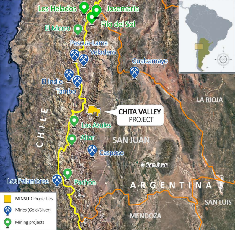 The Chita Project⠀ is an advanced exploration initiative located in the Chita Valley, Church, province of San Juan, Argentina. Developed by Mining Sud Argentina S.A. —a society between Mind Resources Corp. and South32—.