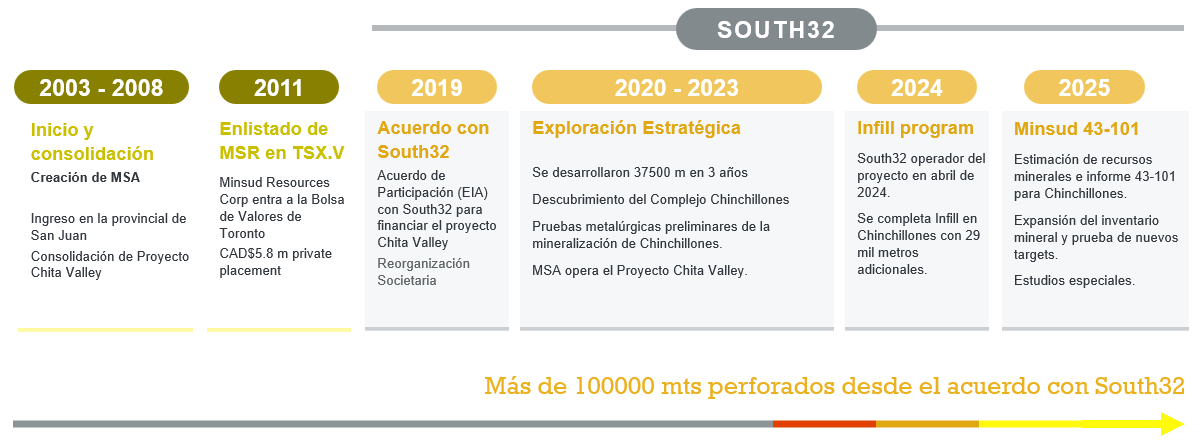 Originalmente denominado Chita Valley, el proyecto actualmente cuenta con dos objetivos desarrollados, Chita y Chinchillones, ambos con un sólido potencial de expansión de su inventario mineral. Este crecimiento estratégico impulsa la construcción de una nueva denominación para el proyecto, alineada con su evolución y perspectivas de desarrollo.